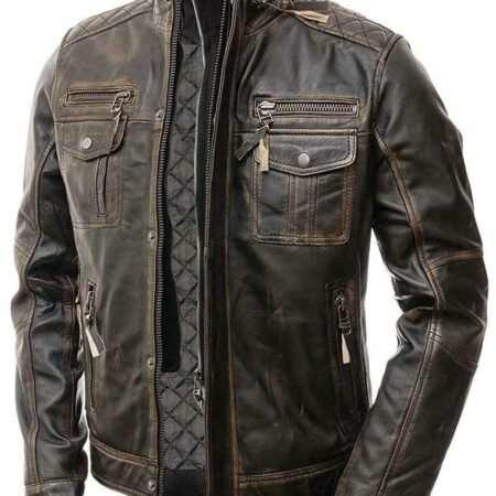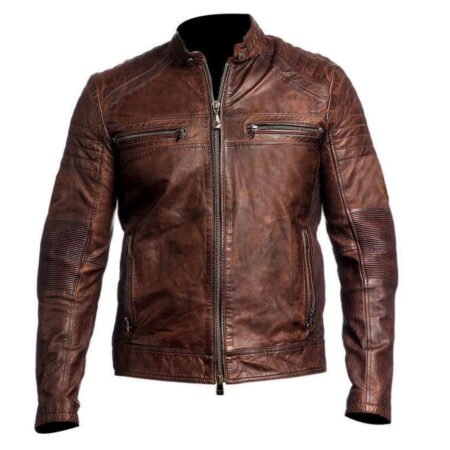 - This appealing distressed brown leather jacket is picked to craft this admiring jacket that you can attire for many upcoming years ahead.